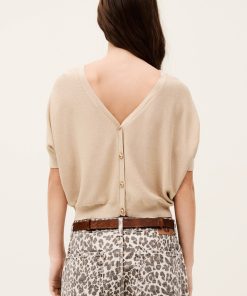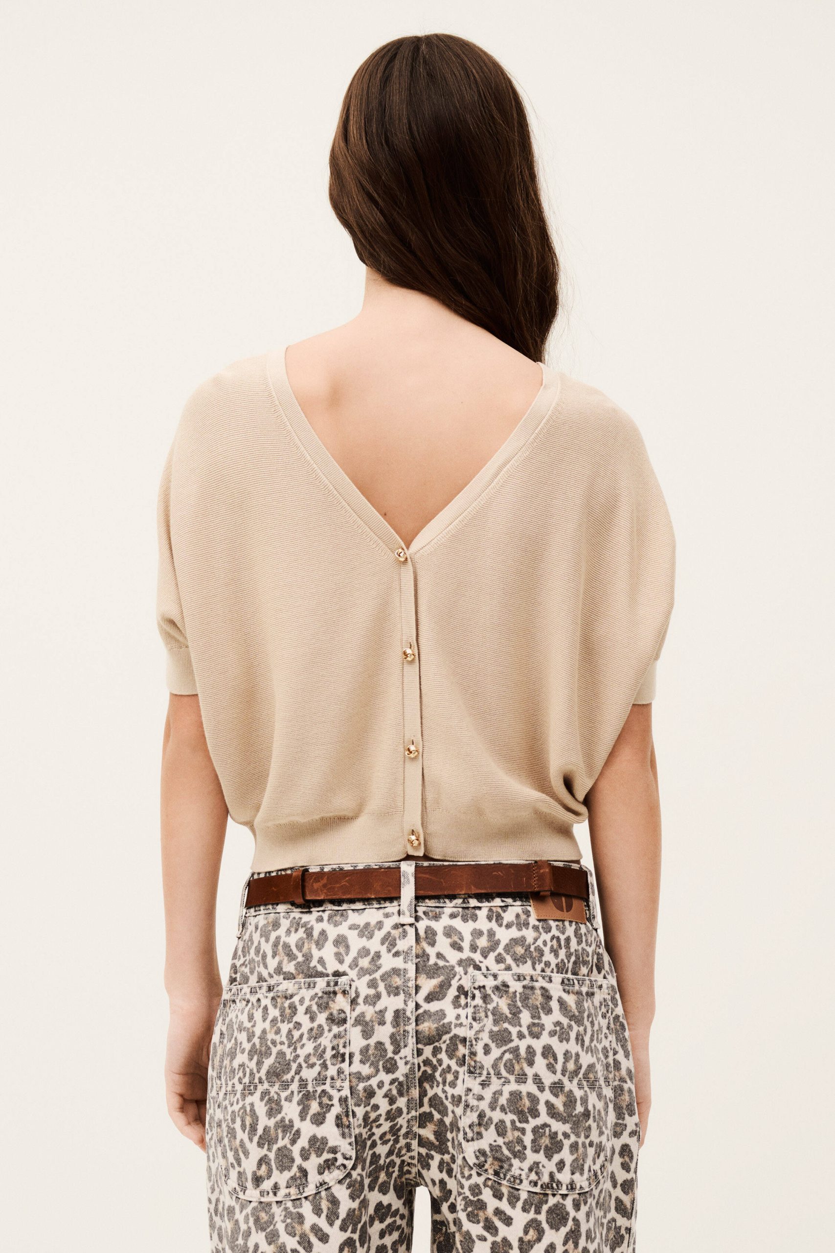– V-neckline- Buttoned- Ribbed trim- Loose fit