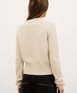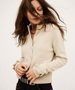 – Slim fit- Round collar- Long fitted sleeves- Ruffled at wrists- Ribbed hem and sleeve cuffs- Jersey knitThe wool in this model comes from a certified supply chain that ensures animal welfare and sustainable pasture management.