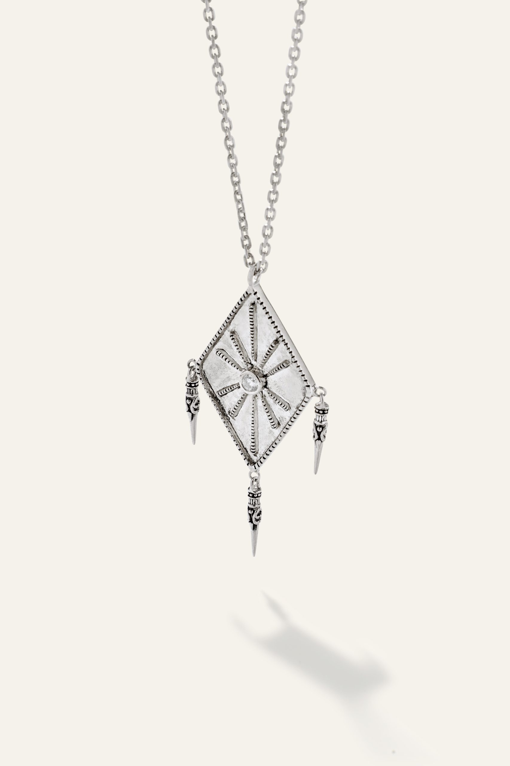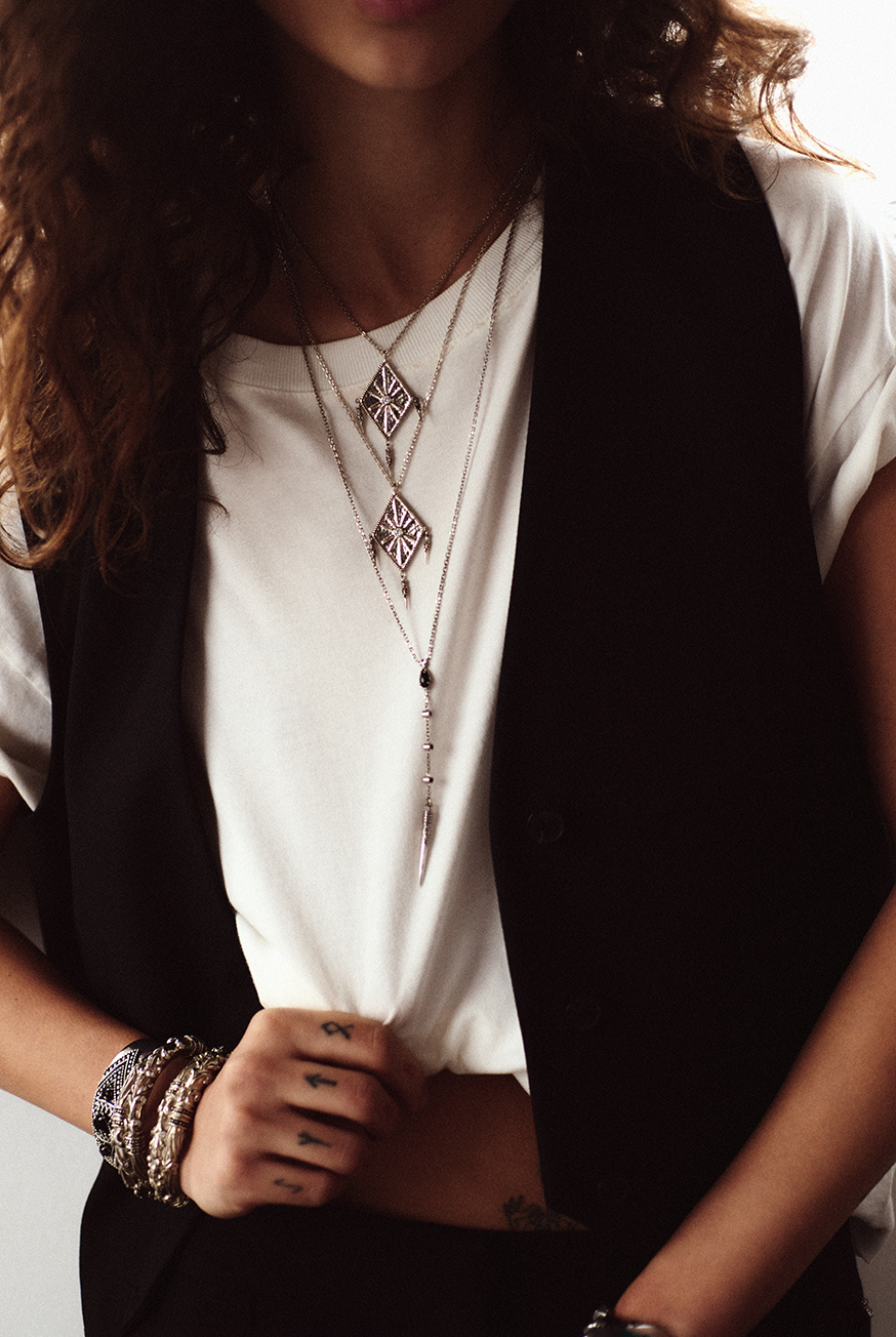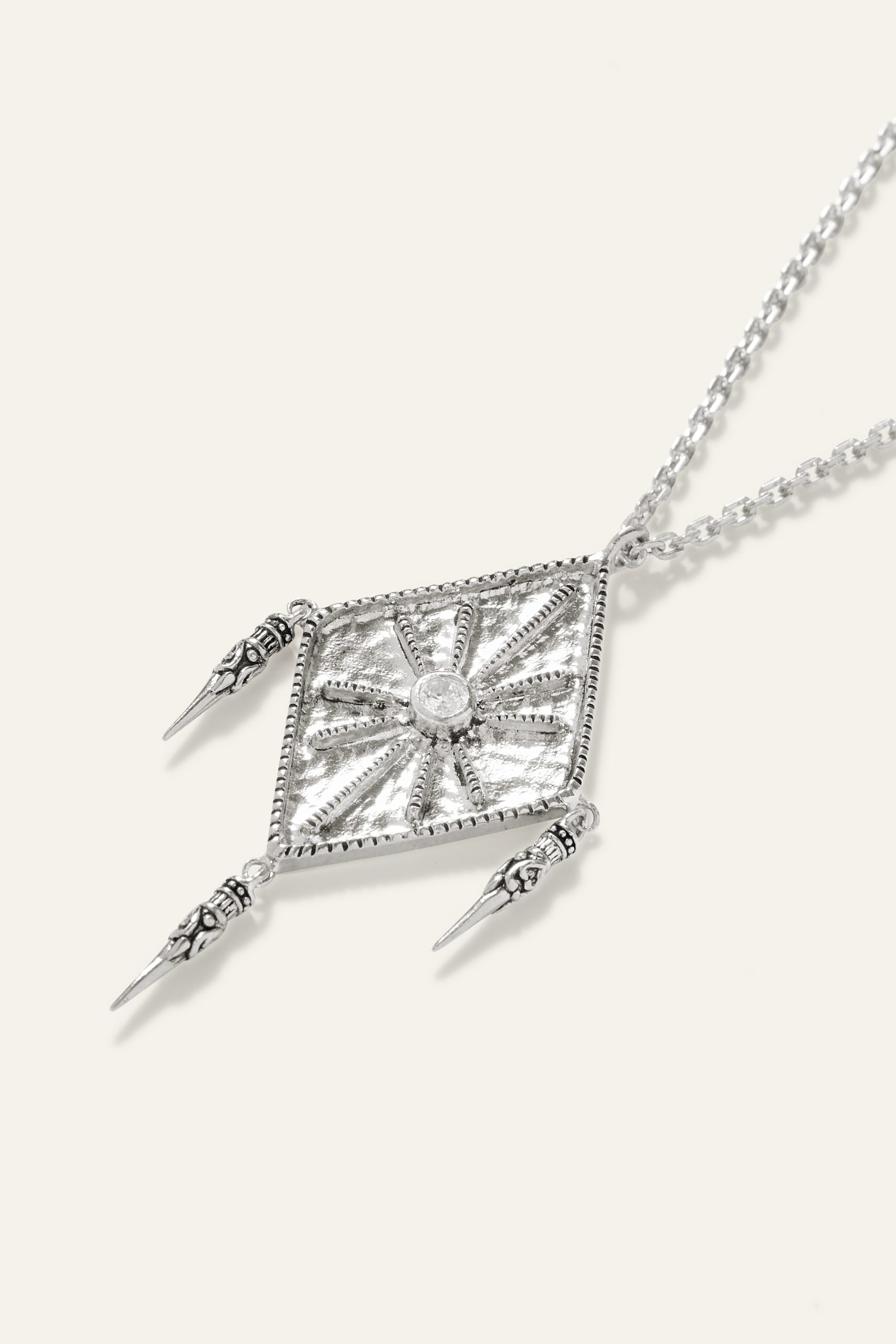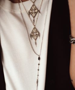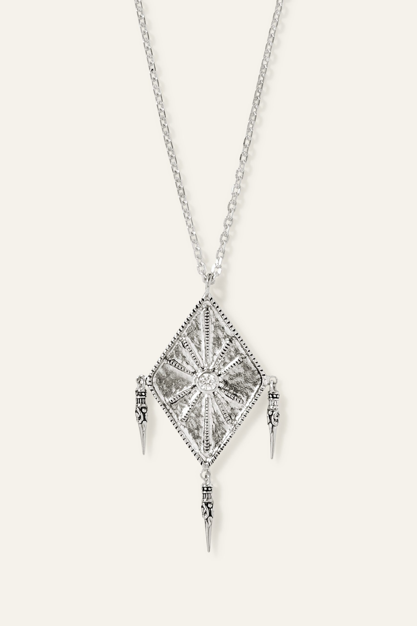 – Engraved details- 92.5% recycled 925 sterling silver, 4.15% copper, 2.4% zinc, 0.45% tin- Covered with a rhodium-plated plug- Pendant length: 4.7 cm- Total length: 28 cm- Item delivered in a pouch with a QR code inviting you to discover the history of the collection and our jewelry care tips- Eco-friendly collection ba&sh Jewelry is an eco-friendly collection made with ample amounts of bohemian style and rock ‘n’ roll flair! Jewelry should be carefully handled and cleaned to preserve its beauty. To prevent its metal from tarnishing, avoid the use of chemical products and keep it away from damp areas. To be safe, wear your jewelry as much as possible! Get in the habit of removing your gold-plated jewelry before showering. This will help it last longer! With gold-plated pieces in particular, the thin layer of gold can become discolored or flake off in contact with water, soap and other products.