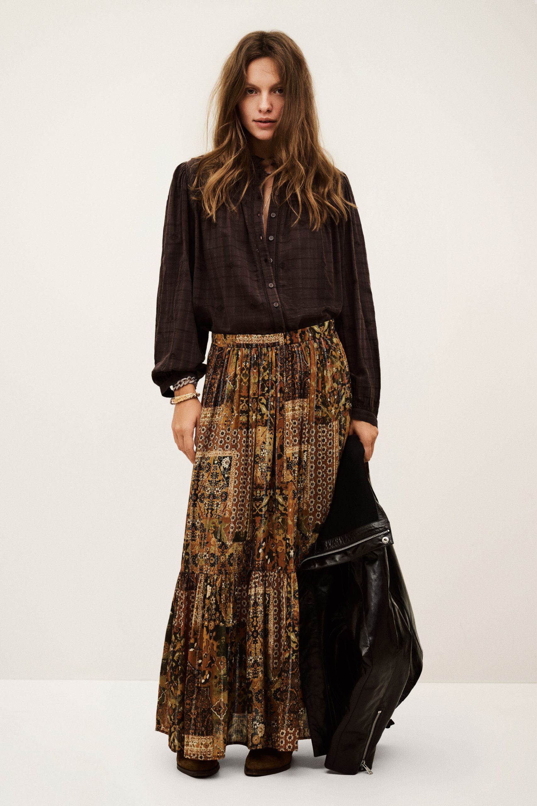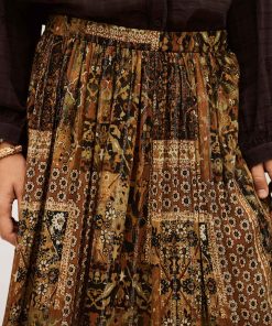 – 70s style print- Smocked rear waist- Seam detail with gathers on the baseThe viscose in this model is made from wood pulp from sustainably managed forests.
