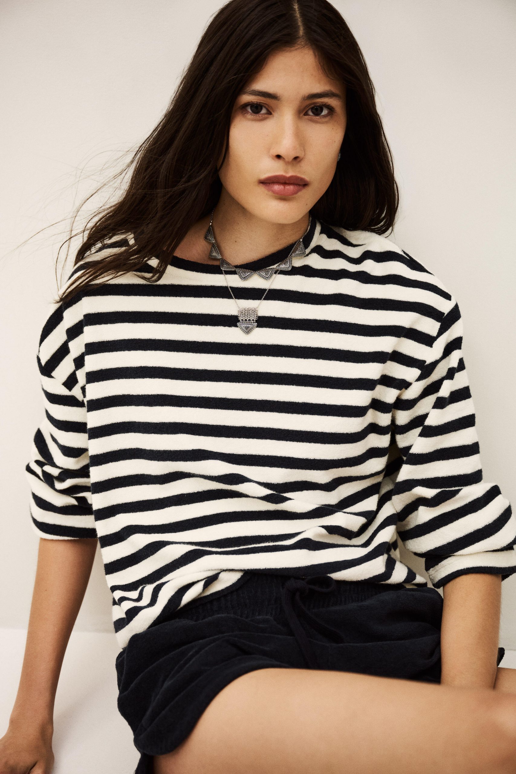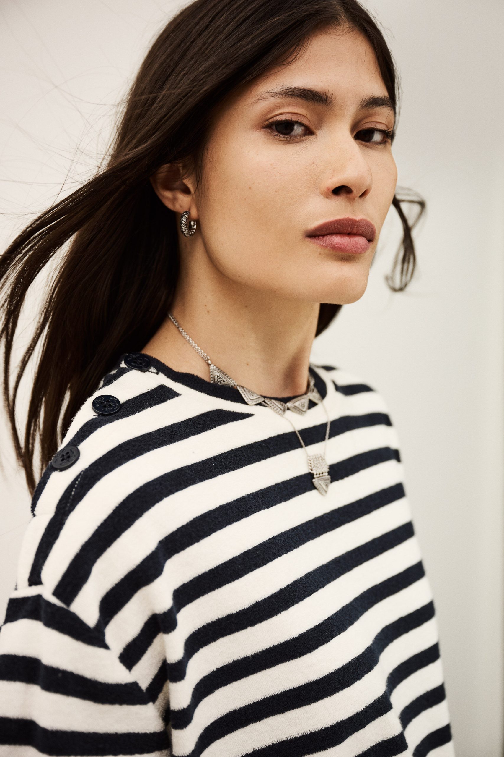 – Loose-fitting- Straight cut- 3/4 turn-up sleeves- Buttoned tab on the shoulder- Round neckline- Logo in backThe cotton fibers in this model come from organic farming.