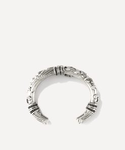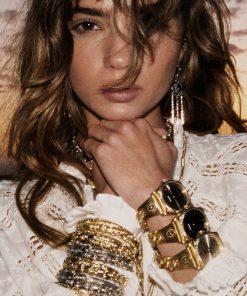 The open JAGG bracelet is a very unique design. Choose between recycled silver or 3-micron gold plating. It is embellished with beautifully intricate details. Arabesques reveal small zircon accents, which catch the light and reflect the sunshine. We love this design, which is styled without a clasp and slides right onto the wrist. The 3.1 centimeter opening makes it easy to slip on, without the risk of losing it. Coordinate it with all your looks!- Wrought metal bracelet- Gold or silver with zircons Jewelry should be handled gently and maintained to preserve its beauty. To protect them from the natural oxidation of the metal, avoid wet areas and chemicals. Make it a habit to remove your gold-plated jewelry before showering to increase its longevity. With gold-plated items in particular, the thin layer of gold will naturally discolor or flake off when it interacts with water, soap and other chemicals.